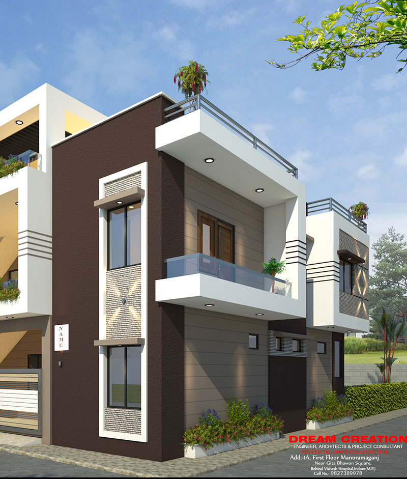 This architecture and elevation work is planned for 1600 sqft plot size for G+2 residential bungalow which is located in Indore. In this unit we had planned elevation work, in which tiles work, door size, reel pipe, glass work, false celling, and garden work was include.