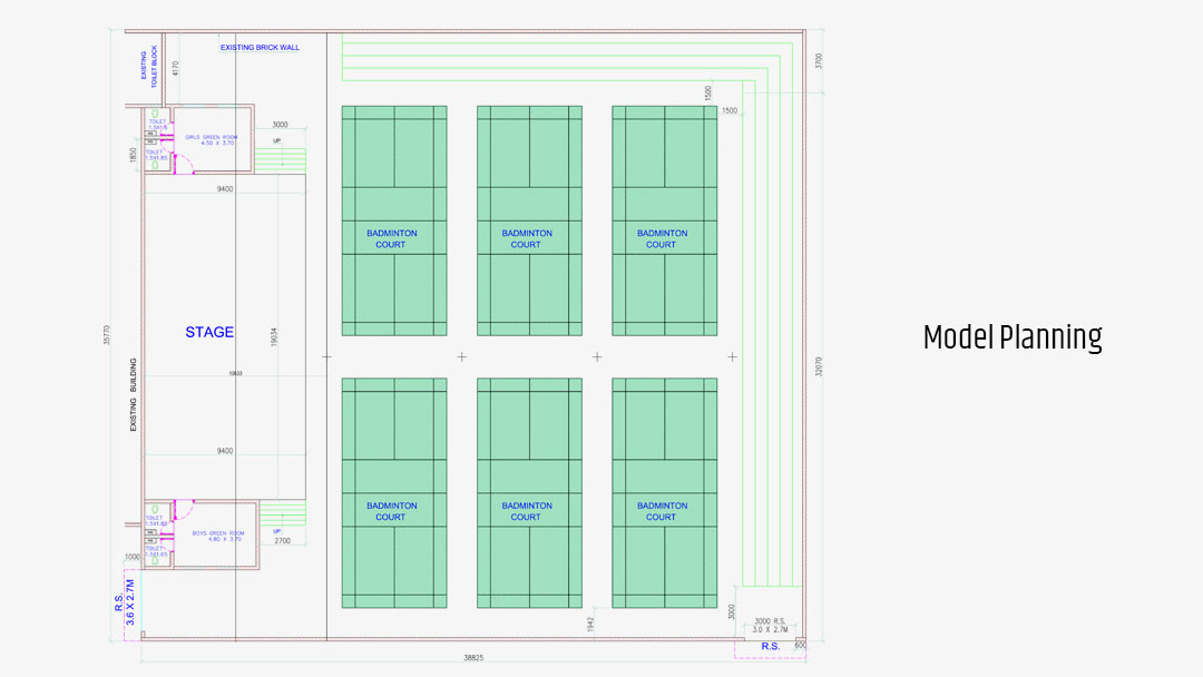 Dream Creation Indore offer a wide range of user friendly commercial complex planning at affordable price. This plan is designed for 20000 sqft plot size with architecture planning for commercial sport complex unit which is located in Indore. In this school sport complex we had planned badminton court, changing room, audience gallery, drainage system, turbo ventilator, purlin etc.
