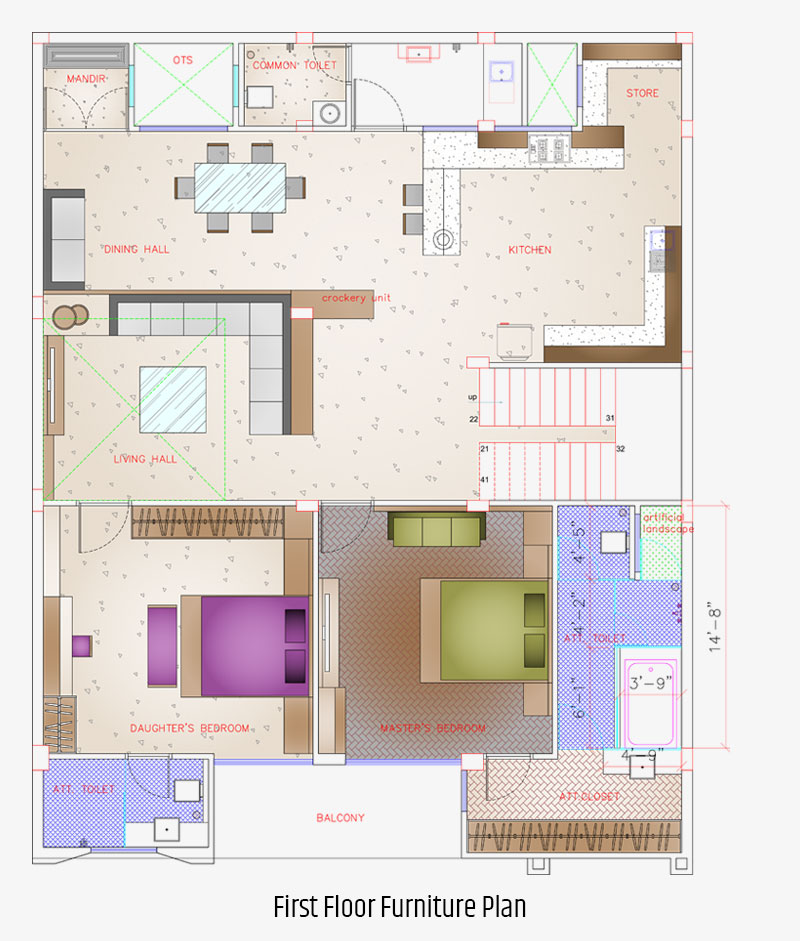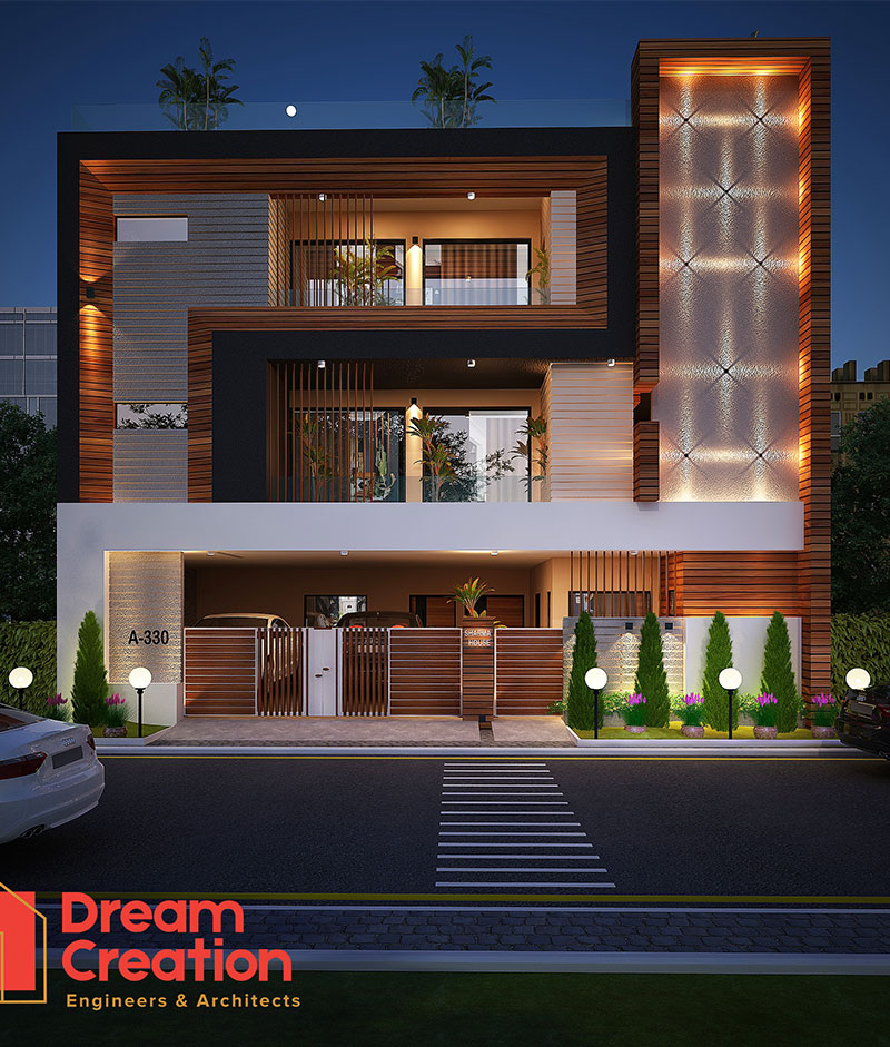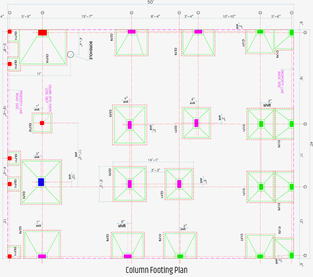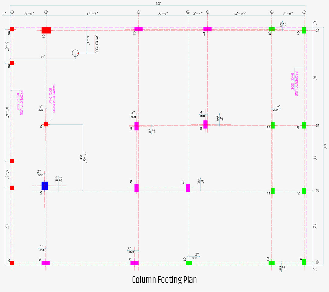 Dream Creation Indore offer a wide range of readymade bungalow architecture & interior and material planning at affordable price. And also we work according to client needs. This plan is designed for 40*50 plot with column footing plan, first floor brick plan, furniture planning, and beam column size planning for G+ 2 residential villa which is situated in Indore (MP).