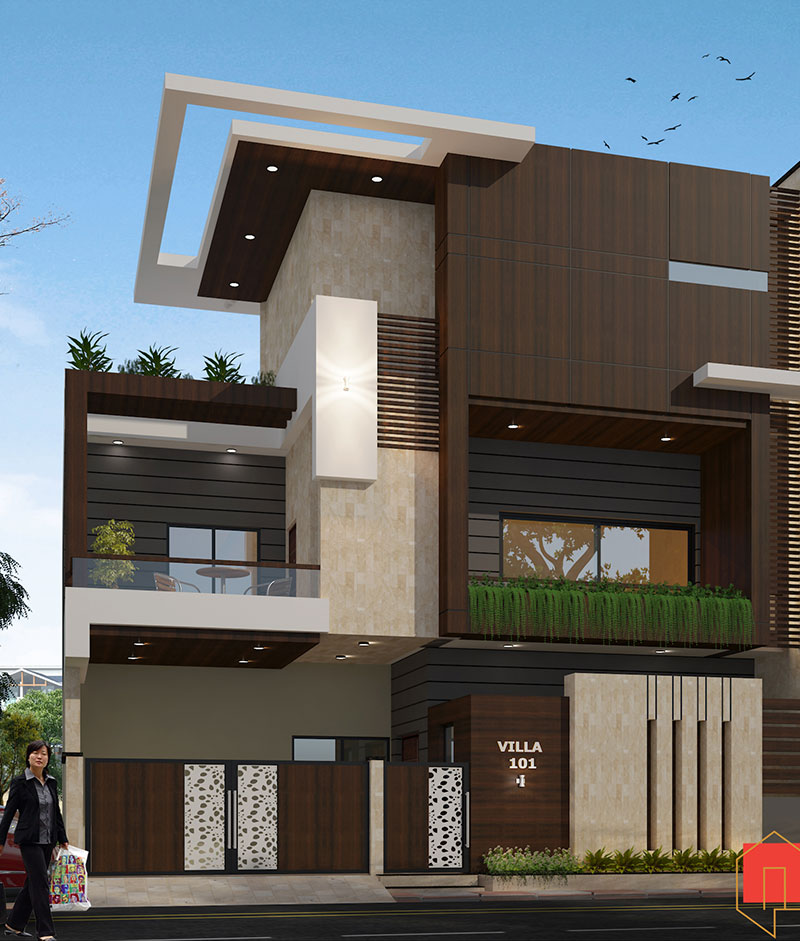 This architecture and elevation work is planned for 1800 sqft plot size for G+1 residential bungalow which is located in Indore.